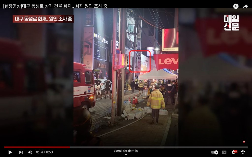 The fire in the video broke out near Dongseong road in Daegu, roughly 240 kilometers away from Seoul.