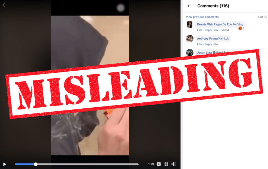 The footage in Chiang’s post was viewed more than 100,000 times, shared some 1,600 times and received more than 1,800 emoji reactions. Fact-checking project Kau Yim commented on Chiang’s Facebook post that the video is not evidence of the teenagers being protesters.