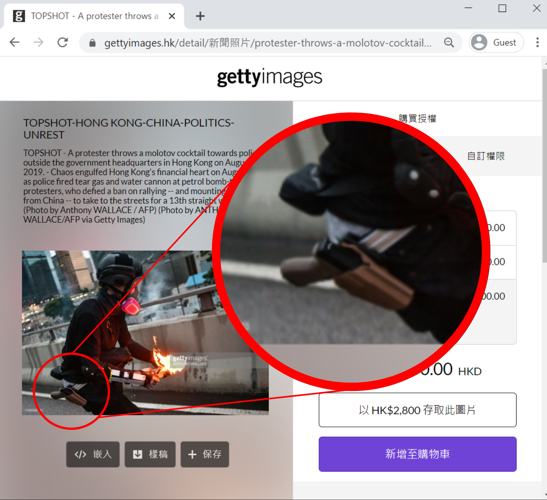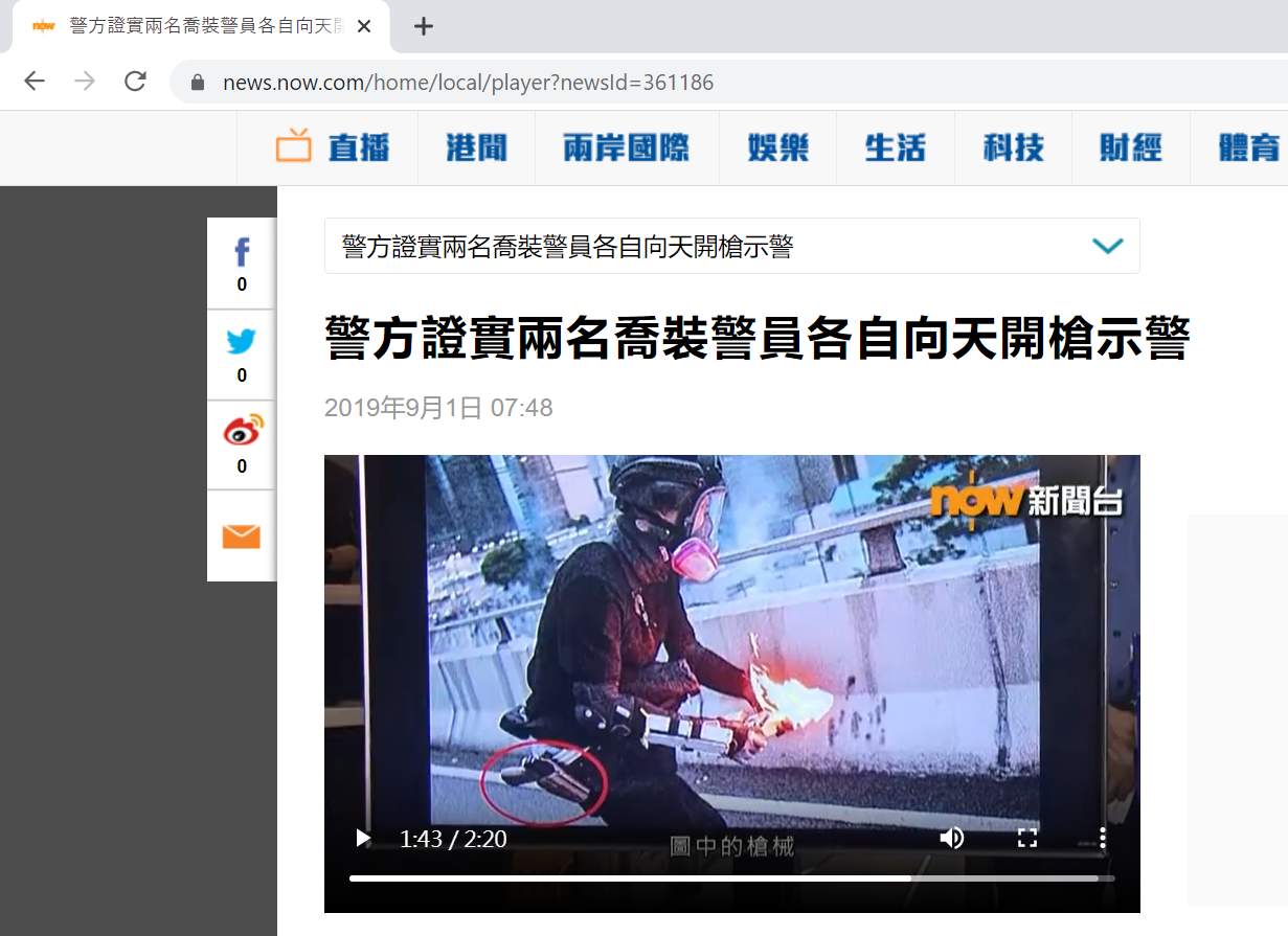 On Sep. 1, 2019, after the claim about the undercover officer instigating conflict between the riot police and protesters was widely shared in Hong Kong, local online publication Dimsum Daily reported that the Civil Human Rights Front had confirmed that the sidearm was indeed an air gun.