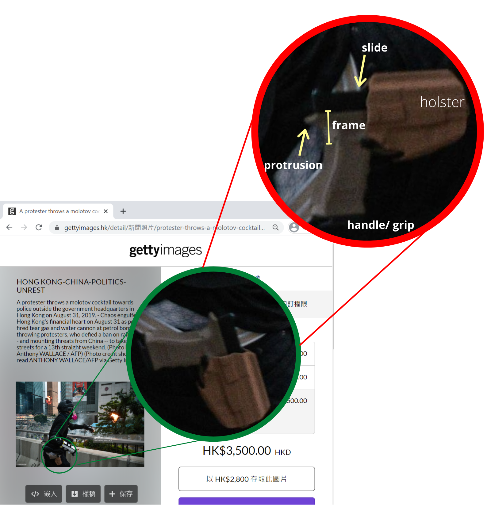 On Oct. 7, 2019, the then News Lens editor Cheng Ka-yue fact-checked the claim in Chinese and came to a conclusion that the sidearm was an air gun, a type called BB gun or airsoft gun.