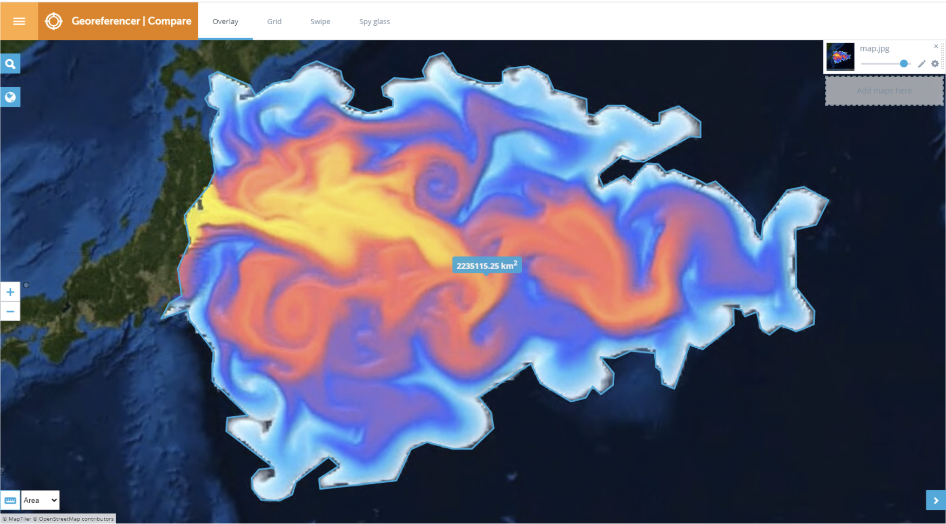 Annie Lab measured the color-coded area by overlaying it on a map through an online tool called Georeferencer.