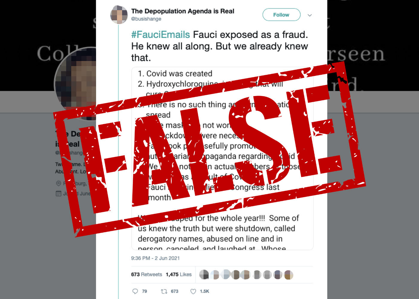 Since over 3,000 pages of email correspondence by U.S. health official Anthony Fauci were made public on June 1, there has been a flurry of misleading and false claims about COVID-19 on social media.