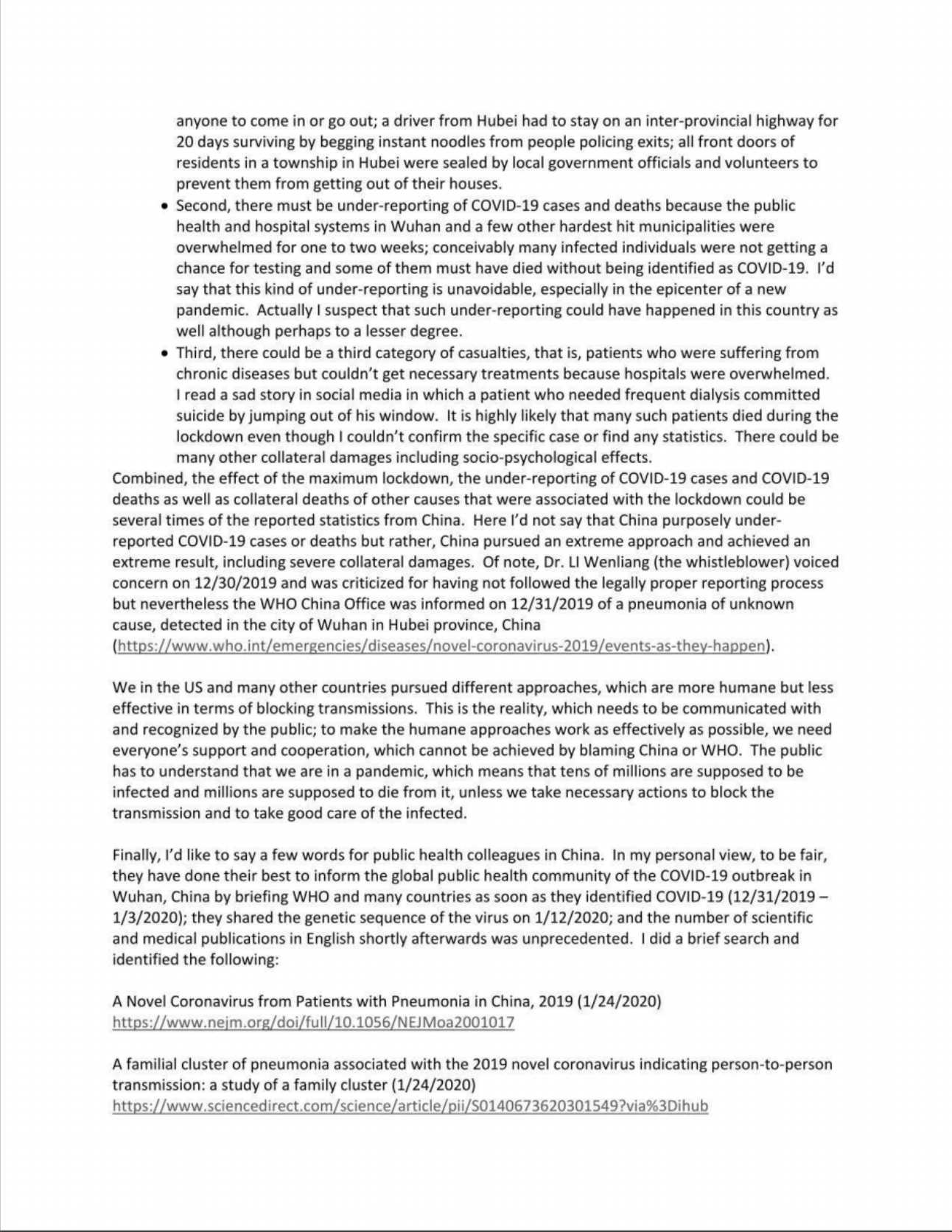 According to the email, his statement was backed by “a highly respected Chinese infectious diseases scientist and health official” who was “convinced that there is asymptomatic infection and that some asymptomatic people are transmitting infection.”