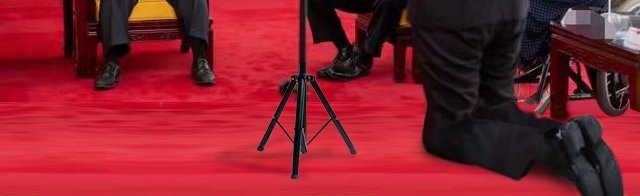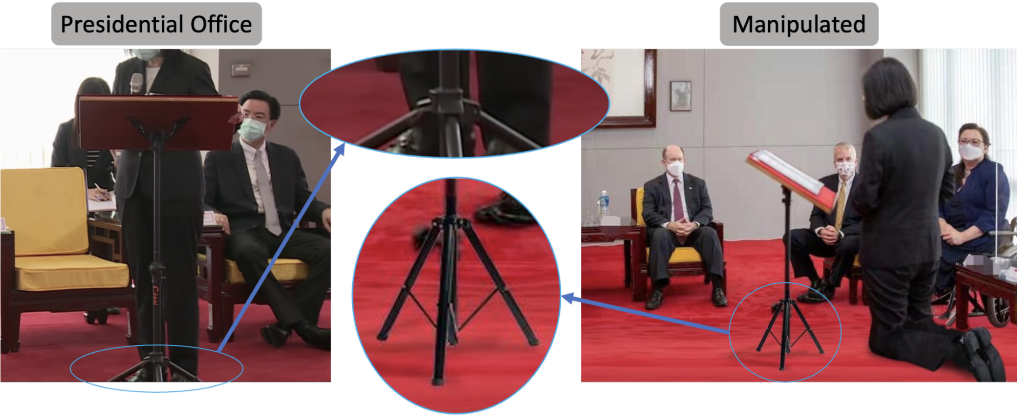 The base of the portable lectern in the manipulated image seems to be added from another photo.