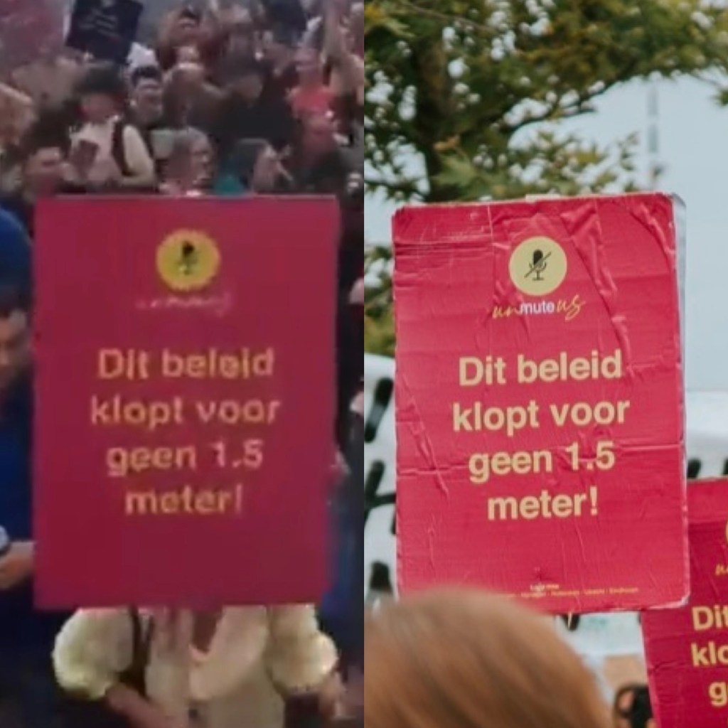 Annie Lab also found Unmute Us’s Instagram post on Sept. 7, calling people to join the protests across the Netherlands on Sept. 11. Some images on their IG account show people with the same signs we see in the viral video.