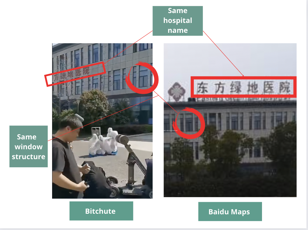 Annie Lab geolocated the area where this particular clip was shot and found out that it was filmed at Eastern Greenland Hospital in Kunshan, China.