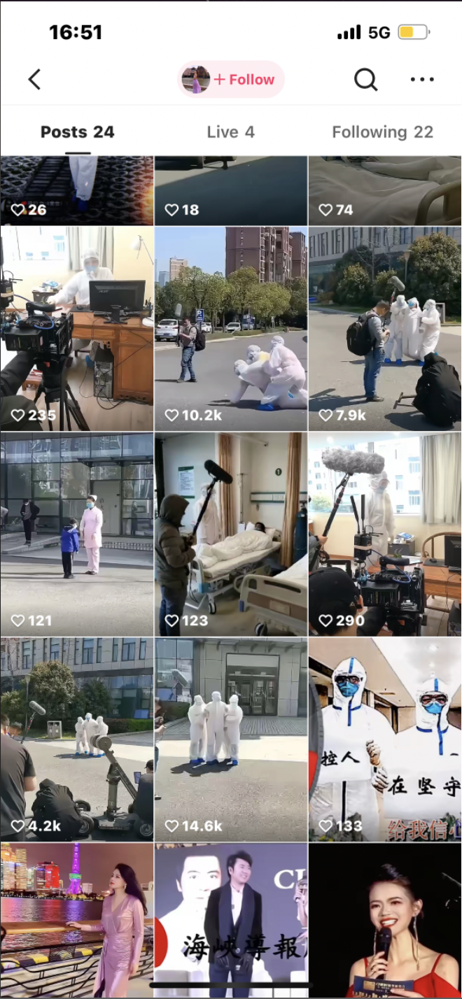 She also posted clips showing other scenes of the COVID-19-themed drama on the same Douyin account.