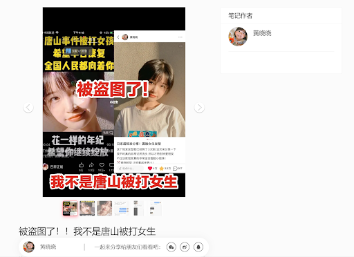 She herself clarified in a post on Xiaohongshu, a photo-sharing social media platform in China, that her picture was taken out of context and that she is not a victim of the attack in Tangshan.