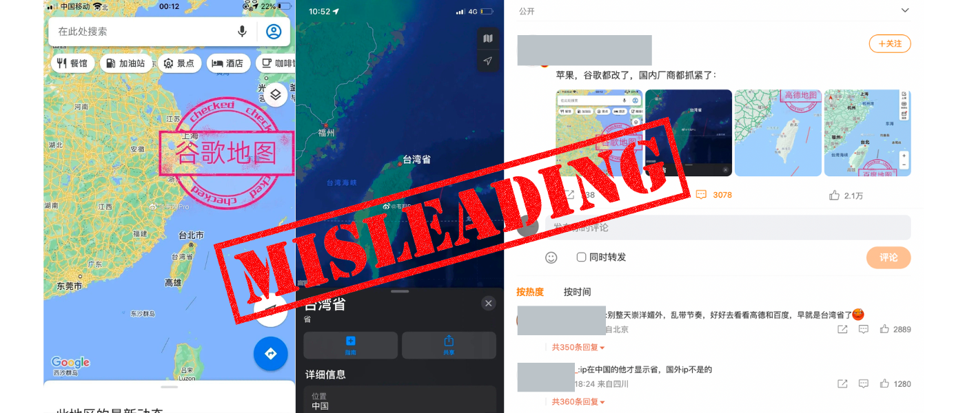 Misleading: Apple and Google Maps have been calling Taiwan a “province” for years, not just after Pelosi’s visit