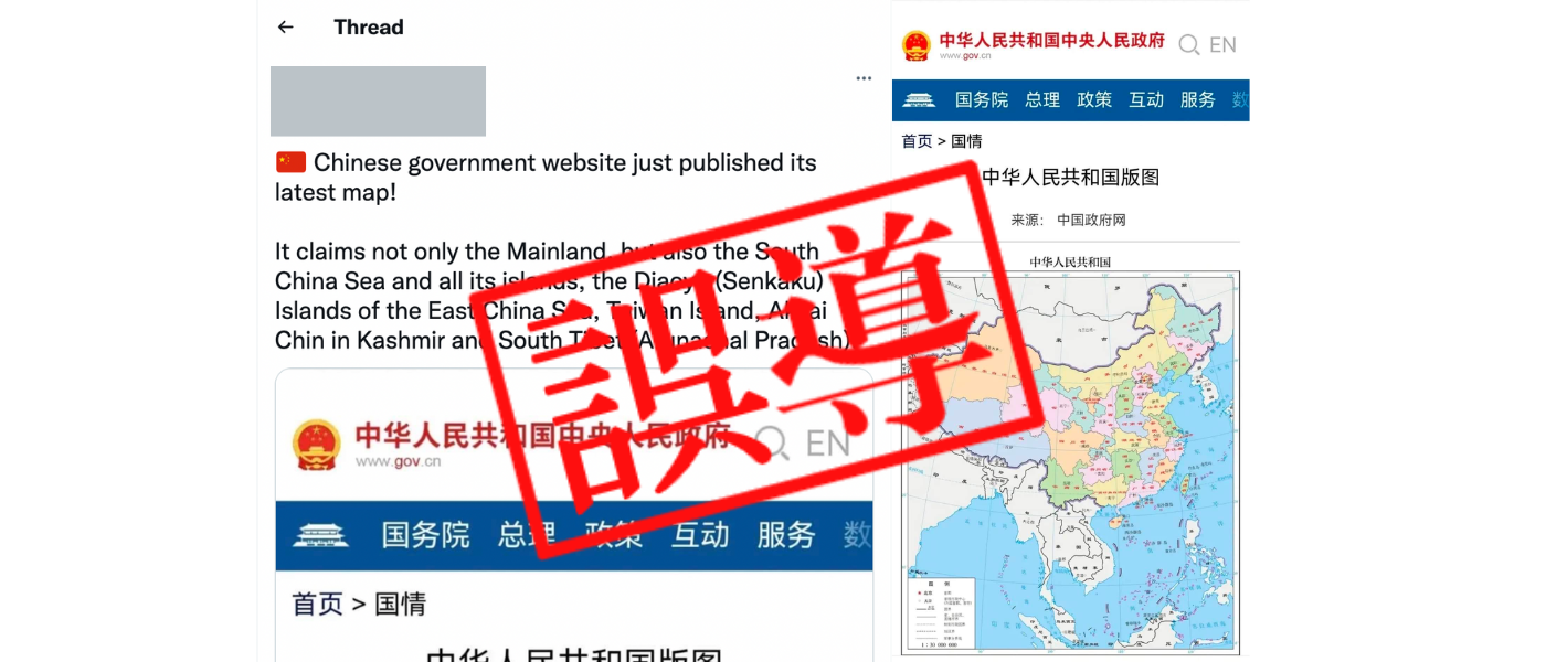 其中一個帖文附上的地圖左下角有「审图号: GS(2019)1818号」的標記,顯示它於2019年通過中國自然資源部審核,而在自然資源部的標準地圖服務系統上亦可找到同一張地圖。