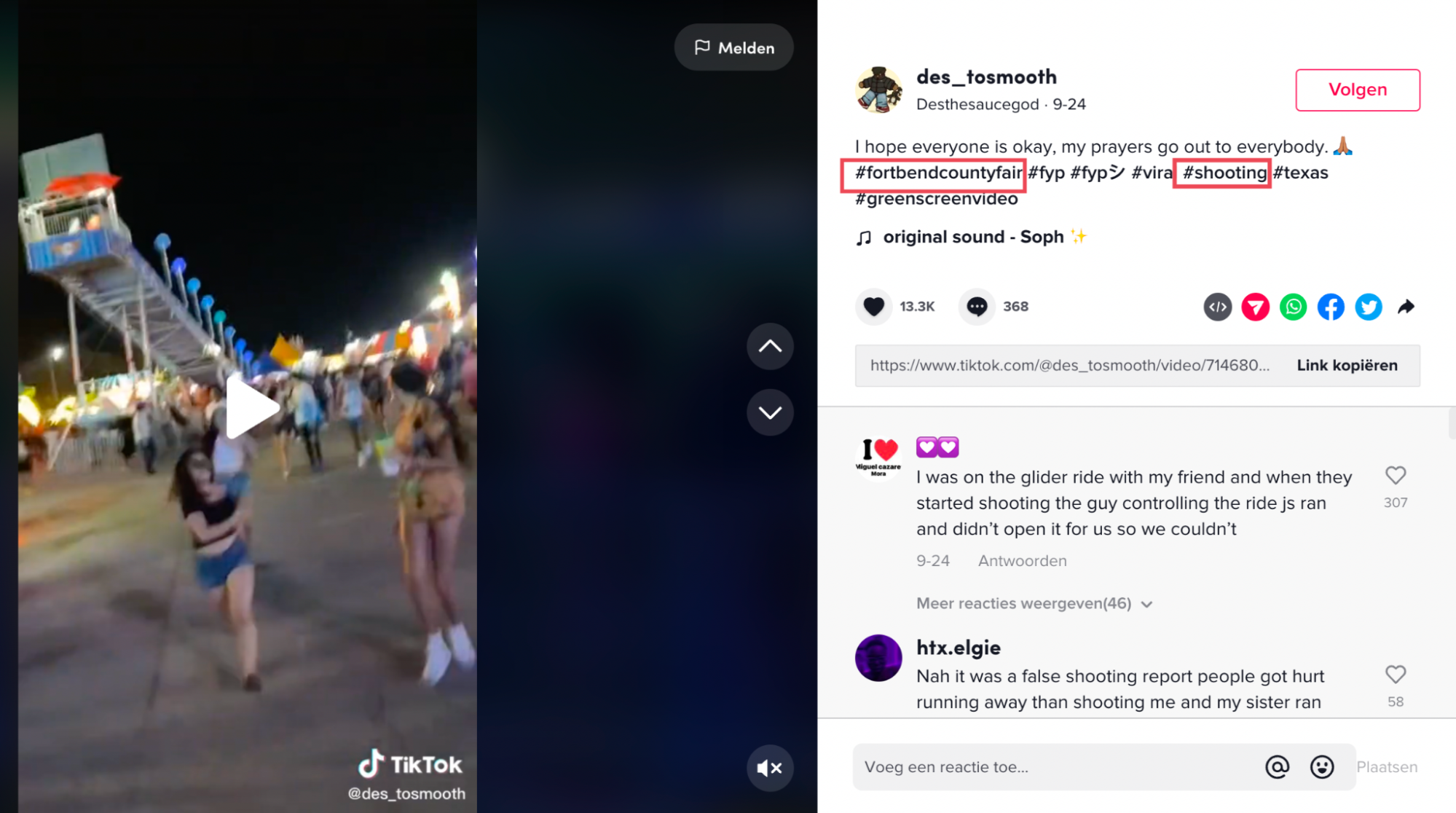 通过搜索关键词,Annie Lab找到了一段9月25日发表的海外版抖音(TikTok)视频,其中的地理位置标签为#fortbendcountyfair(福遍县嘉年华会),视频内容和推特视频完全一致。