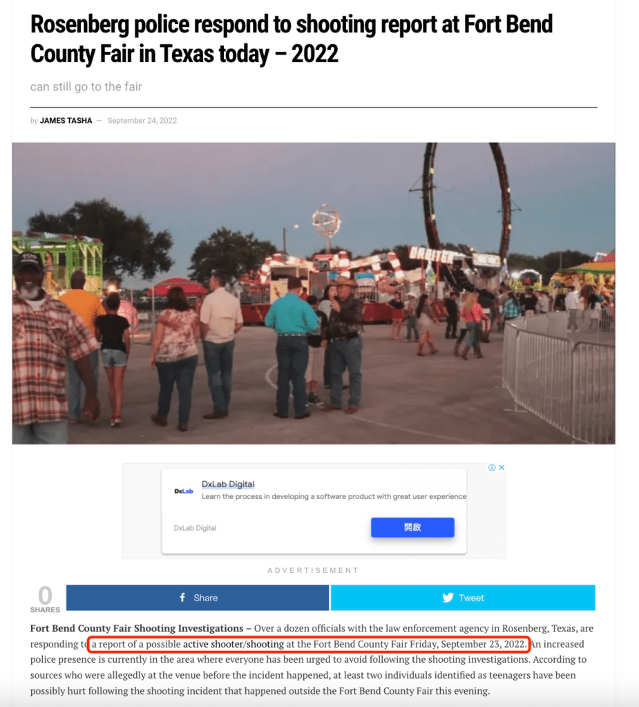 在推特上,有网友指出,视频摄于美国得克萨斯州的福遍县嘉年华会(Fort Bend County Fair)游行活动。