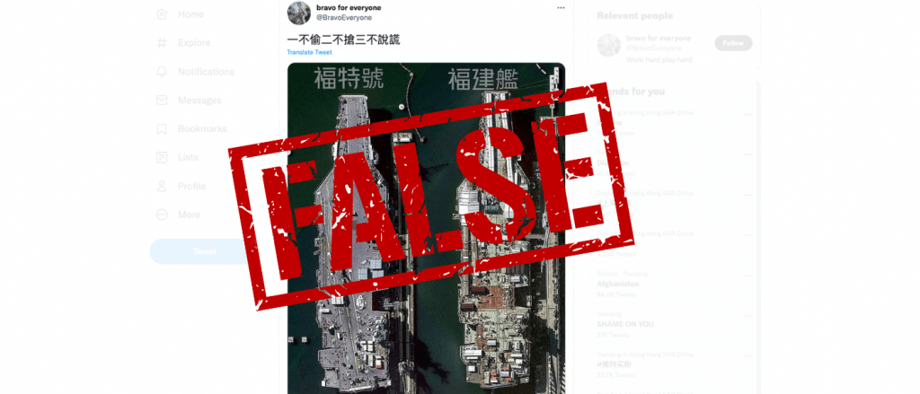 A tweet and a Facebook post on Oct. 9 claimed that China’s new aircraft carrier Fujian looks identical to USS Gerald R. Ford with an aerial photo juxtaposing two closely similar-looking ships.