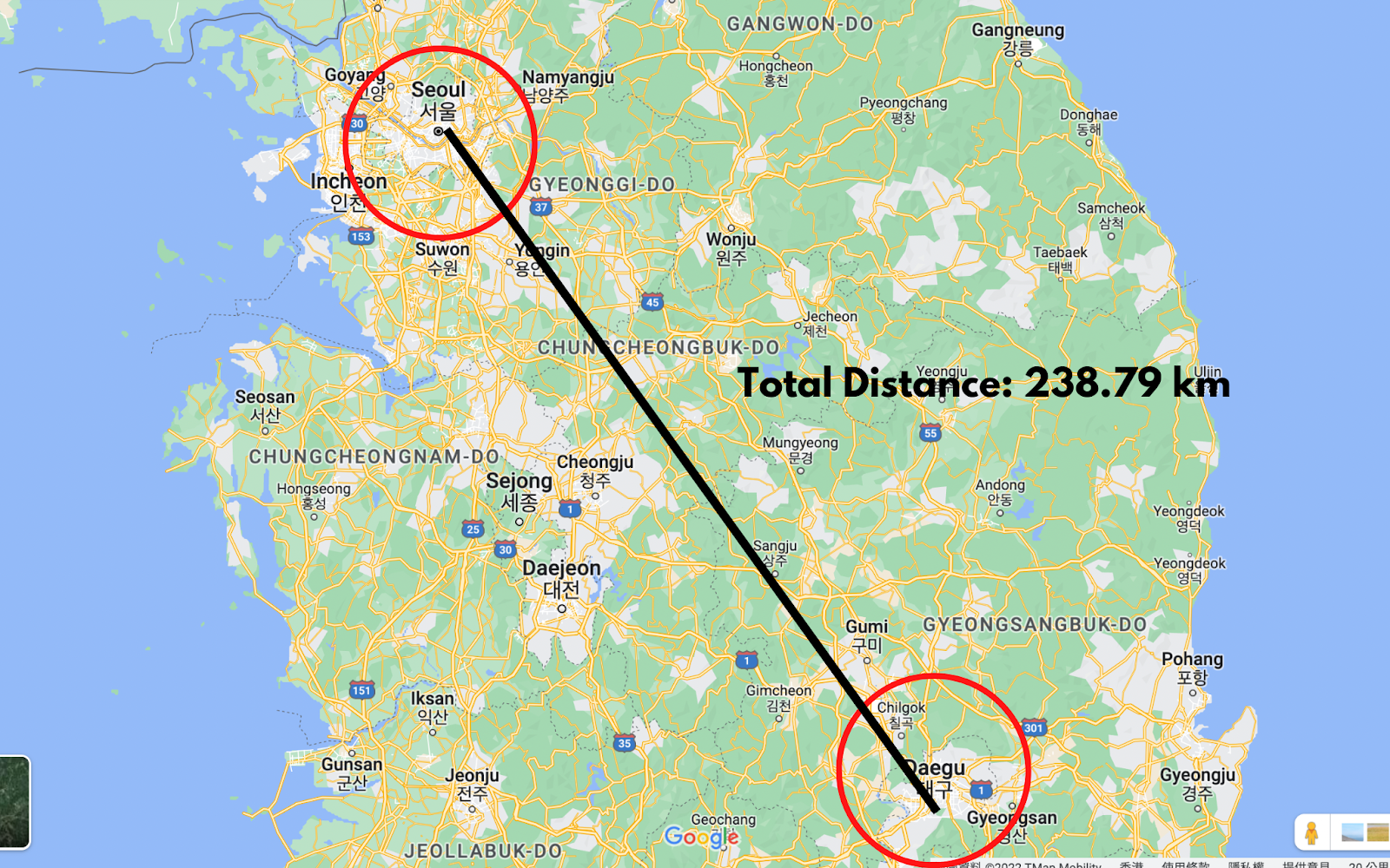 The fire in the video broke out near Dongseong road in Daegu, roughly 240 kilometers away from Seoul.