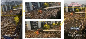 In one of the Douyin videos filmed just before the marathon started, an “E” sign can be seen, which also appeared in the Twitter video.