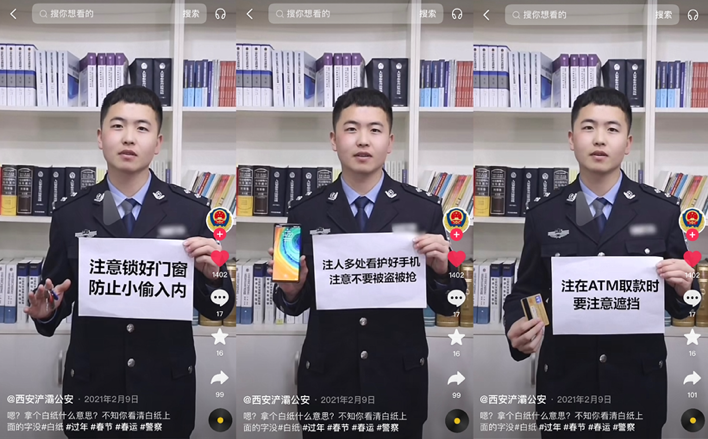 Xi’an Public Security Bureau Chanba Ecological Area Branch posted the footage on Douyin with a message that the public needs to be on guard against all kinds of crimes during the Chinese New Year.