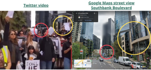 Upon studying visual clues in the video, we are able to identify what appears to be the organizer’s name, “Melbourne for Iran.”