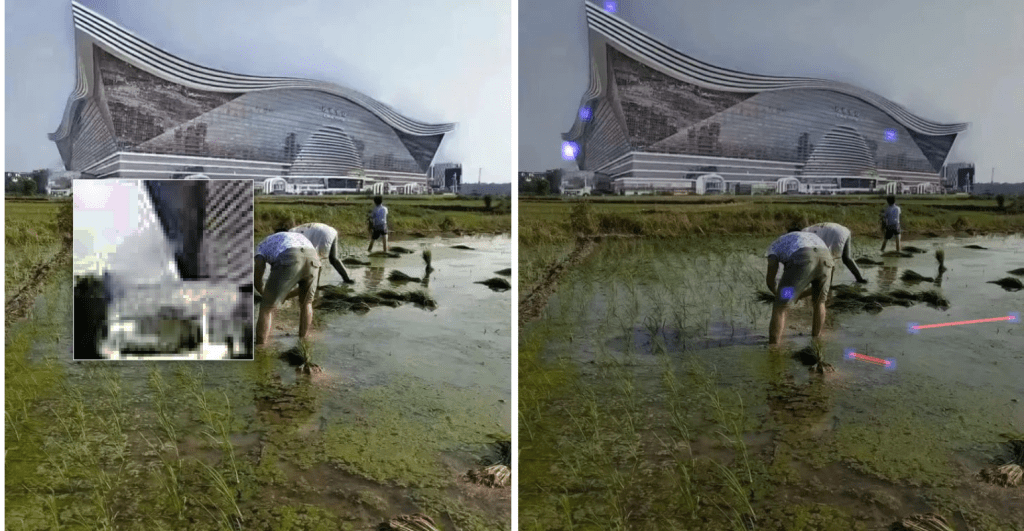 Misleading: This video does not show ‘fake’ rice fields inspection