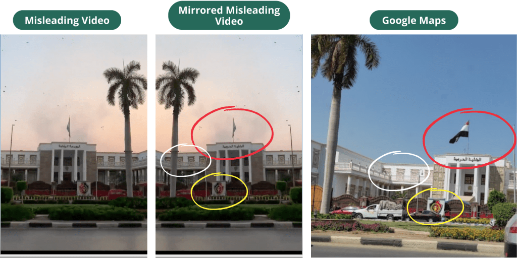 We then geolocated the military academy in El Nozha, Cairo — the same district where the two buildings in the previous clip are also found.