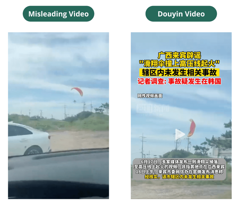 The Douyin video says the content widely circulated through Chinese media outlets that were wrongly reporting the accident’s location to be in Guangxi, China.