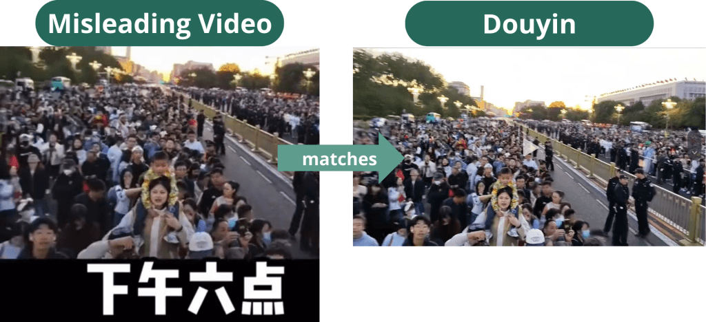 But a reverse image search led to another tweet saying the clip actually shows China’s National Day celebration on Oct. 1. This post included a Douyin video identical to the one in the video under investigation.