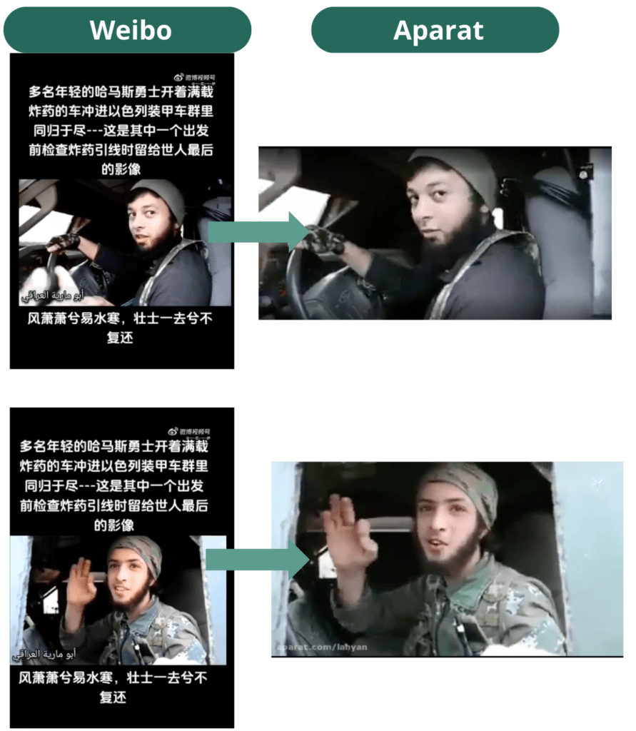 The user said in Chinese, “young Hamas warriors drove a vehicle carrying explosives and crashed it into Israeli convoy,” and suggested that the video was the last footage before the soldiers “headed to the front.”