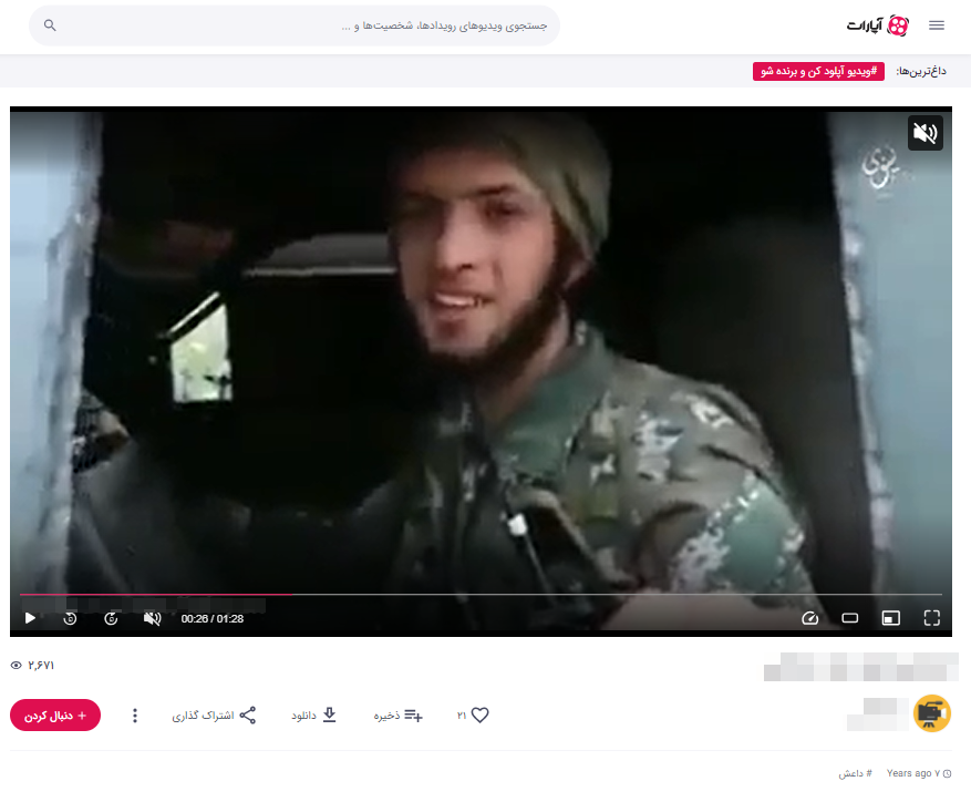 Through reverse image search, Annie Lab found a longer version of the first part uploaded to the Iranian video-sharing platform Aparat in October 2016. Its title in Persian, “انتحاری های دولت اسلامی” suggests the video shows “Islamic State suicide bombers.”