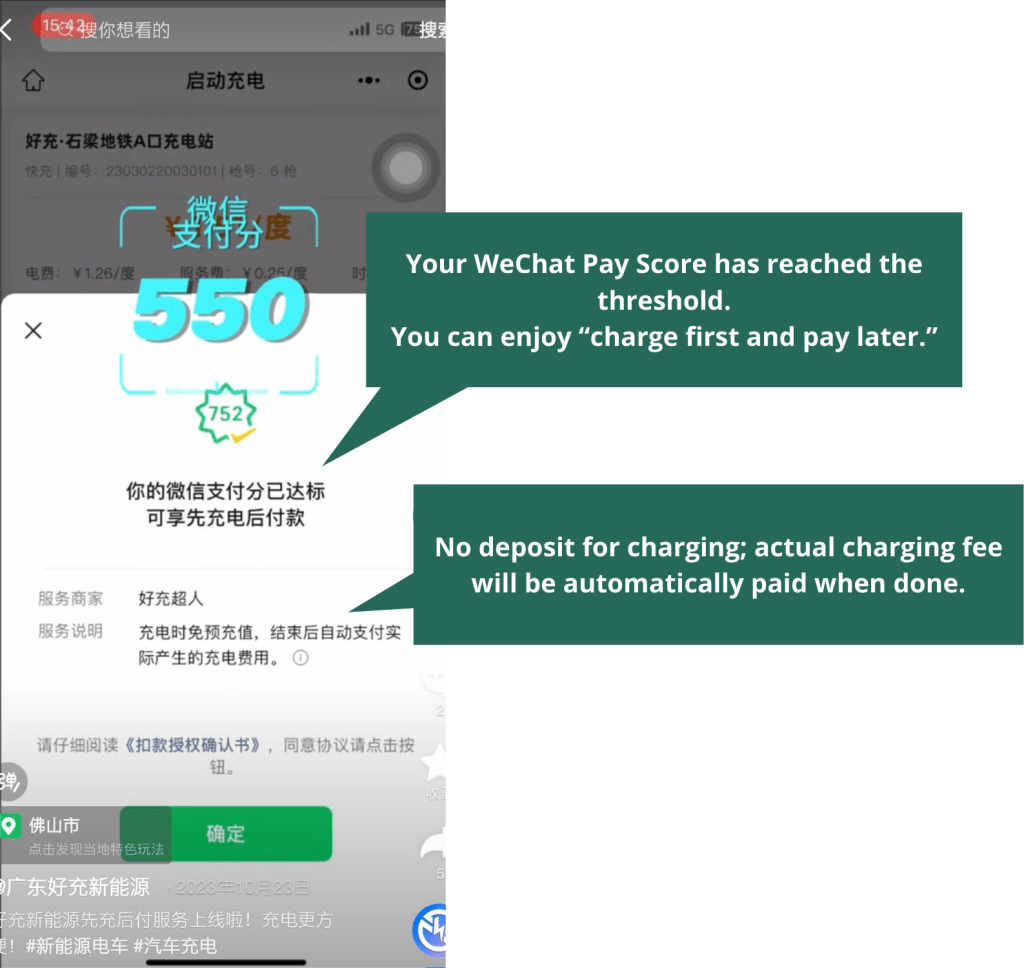 However, a screenshot of the video posted by the X user shows clearly in Chinese that the person charging the car is using WeChat Pay, and thanks to the high credit score, this person doesn’t need any deposit in the app.