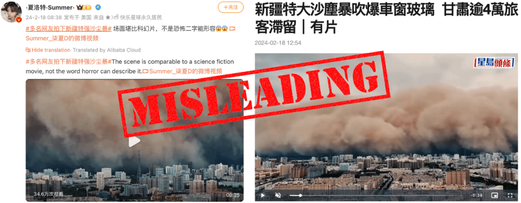 Misleading: These dramatic videos show last year’s sandstorm in Xinjiang
