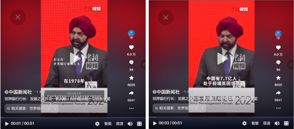This image seems to have been taken from a Douyin video posted by the China News Service (CNS) that reported Ajay Banga’s speech at the event.