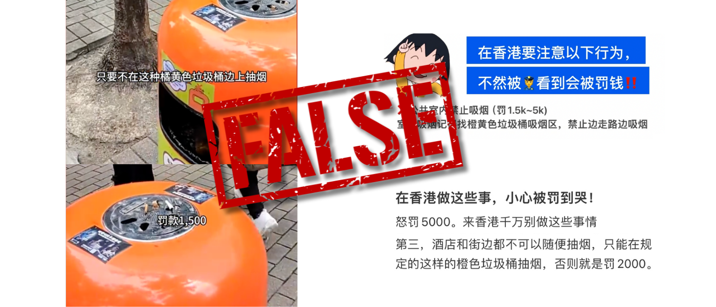 Many Chinese social media posts that give travel tips to Hong Kong claim public smoking is only allowed near the orange rubbish bins on the streets. They say smokers who do not follow this rule can be fined up to HK$5,000 (about US$640).