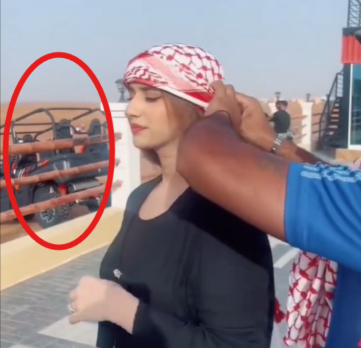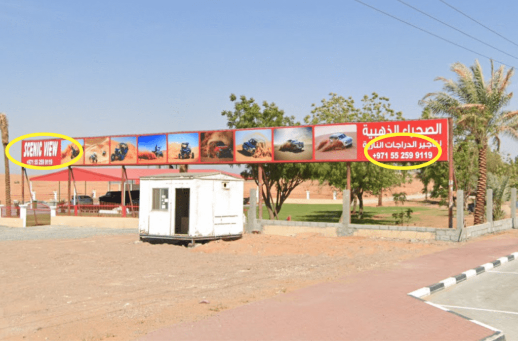 Using some elements seen in the footage, such as quad bikes and a red steel building, Annie Lab could geolocate the video to Scenic View, a dune buggy tour site, in Al Madam, a UAE town in the Sharjah desert, around 60 km from Dubai.
