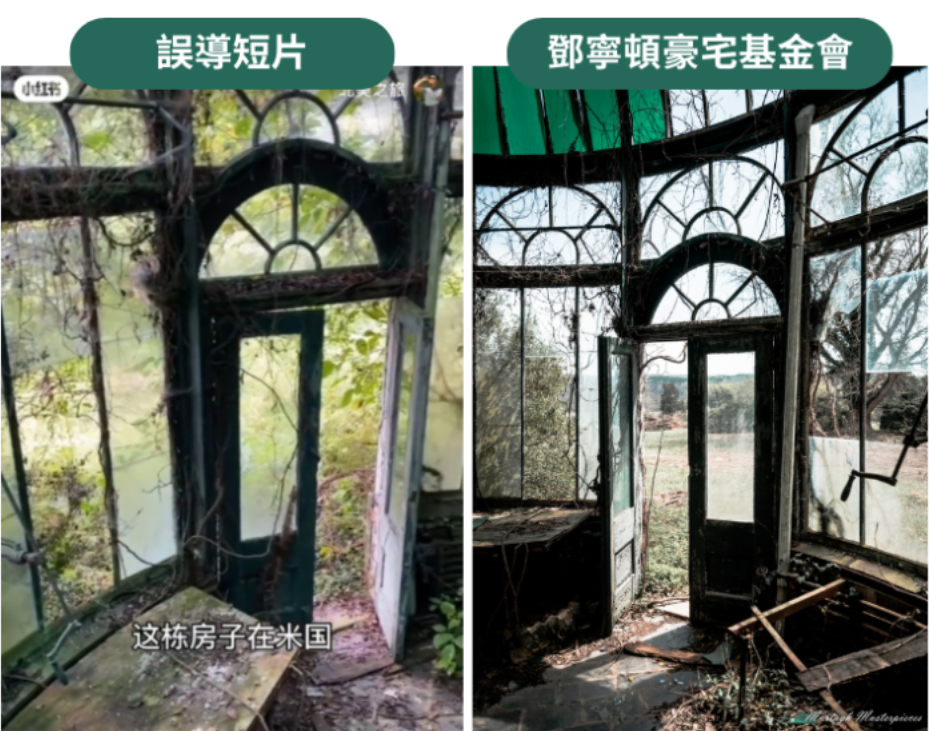 Annie Lab還發現小紅書短片在介紹一座「位於亞特蘭大的荒廢屋子」時,至少使用了兩個不同建築物的影片,而且這些「廢屋」都不在喬治亞州亞特蘭大市。