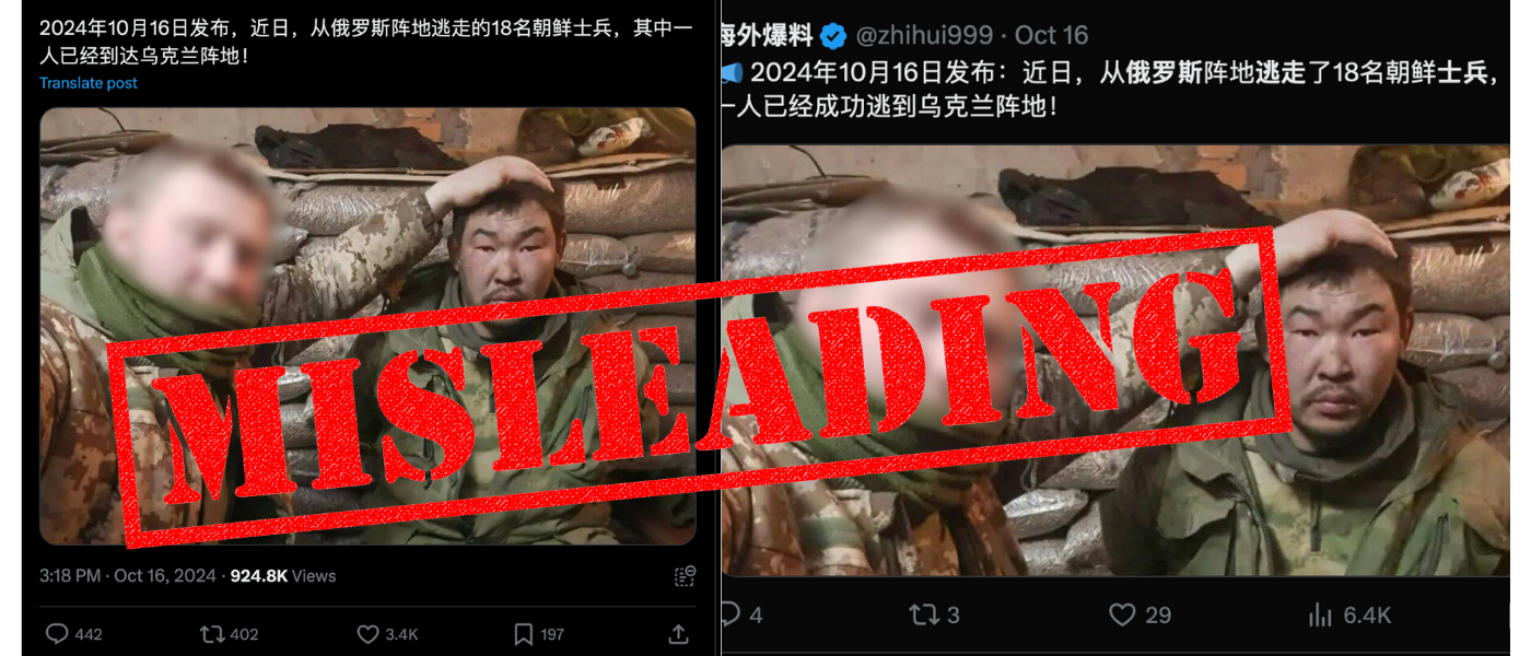 On Oct. 16, a post on X claimed that a North Korean soldier fighting for Russia had defected to the Ukrainian side, with a photo purportedly showing the deserter.