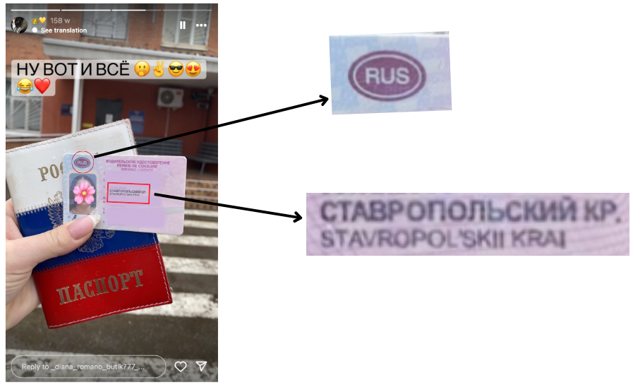 Further supporting the family’s background, the aunt shared an Instagram story, saved in her highlights, displaying her driver’s license, which indicates she is from Stavropol Krai, Russia (we decided not to include a link to the said Instagram story for privacy reasons).