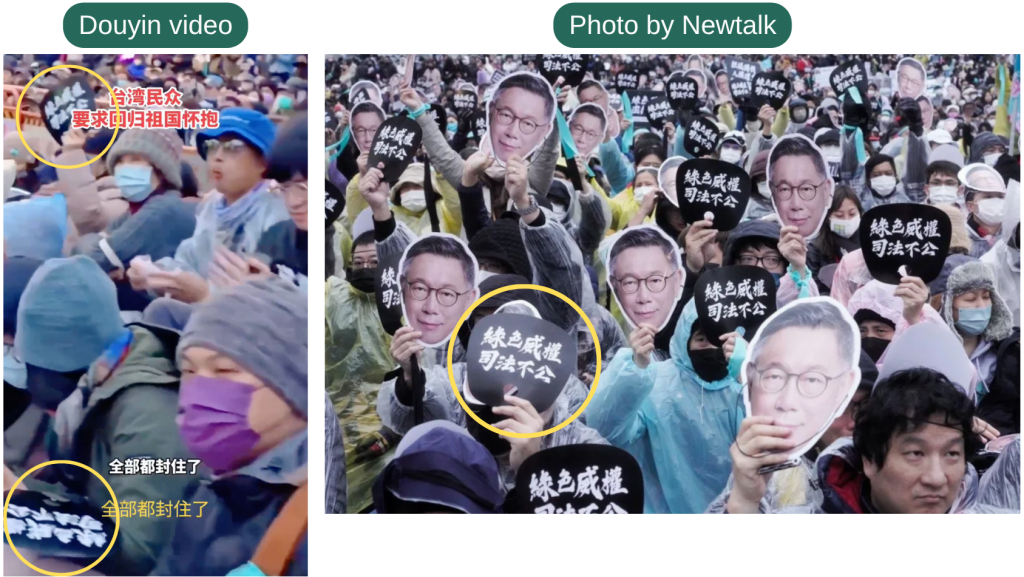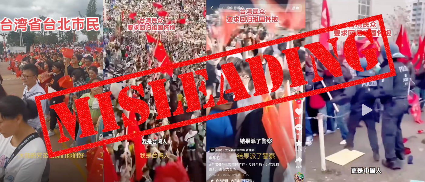 On April 3, a Douyin video claimed to show citizens in Taiwan rallying in support of the self-governing island’s unification with mainland China.