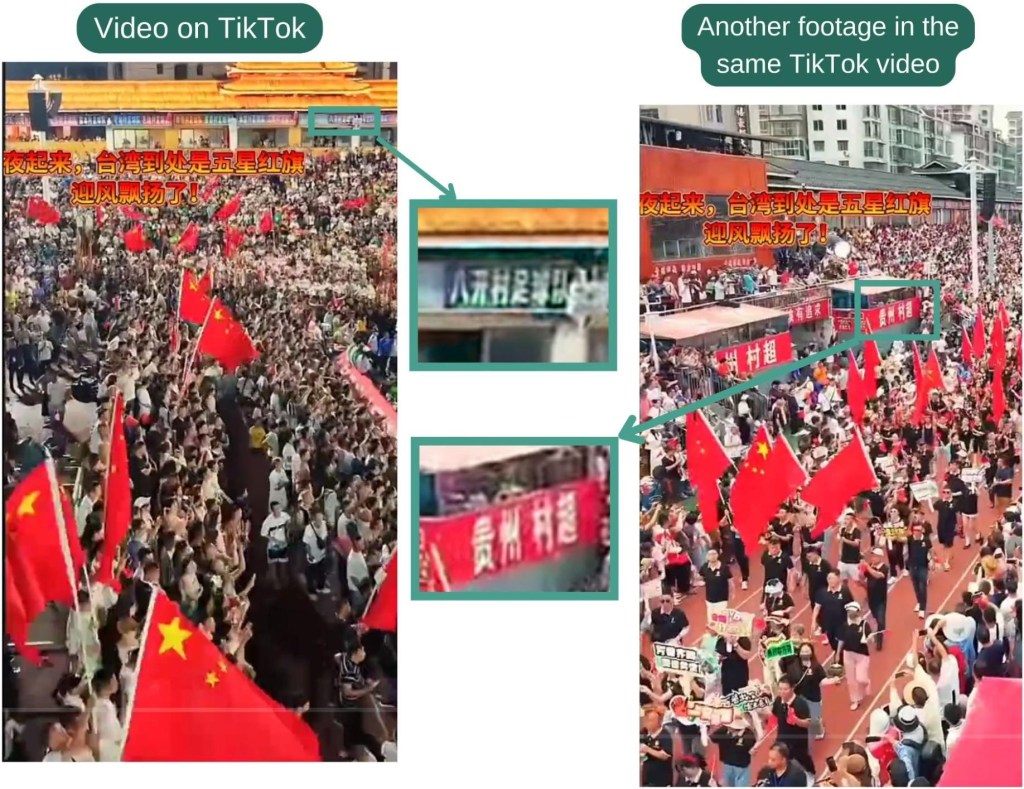 However, Annie Lab found that these claims are largely misleading. Of the 11 scenes in the compilation video on Douyin, eight are unrelated to unification rallies, instead depicting events in mainland China (showing celebrations or sports events), Germany, or the United States.