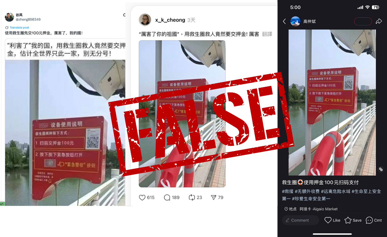 False: Image claiming 100-yuan deposit for lifebuoy access is doctored
