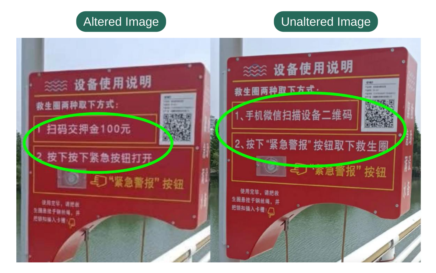 In mid-September, an image of instructional signage in Simplified Chinese for unlocking a lifebuoy went viral with a claim that a 100-yuan deposit is required before using the emergency flotation ring.