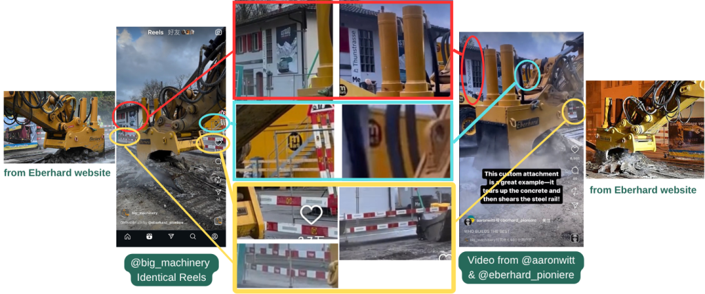 Reverse image searches first led to a reel (archived here) on Instagram posted by user @big_machinery on April 22, 2024. Its caption stated that the track removal machinery was operated by a Swiss construction company, Eberhard, and the footage was captured in 2023 in Bern, central Switzerland.
