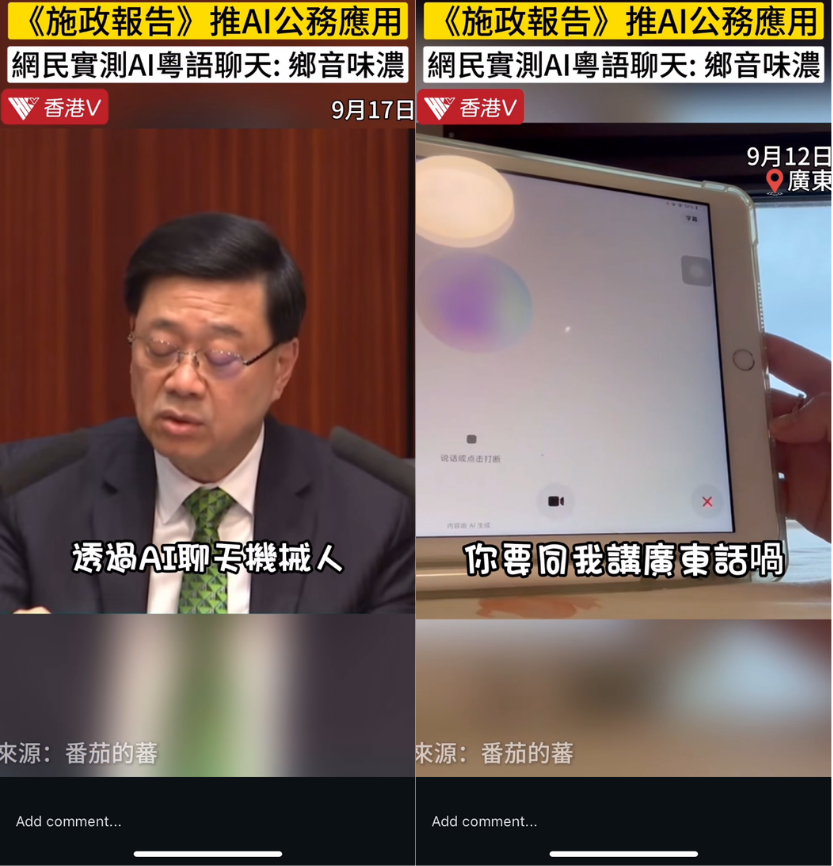 Across the three platforms, their posts gained more than 134,000 likes and 196 comments. A number of viewers left cynical comments about public spending and reliance on Mainland China for an AI tool that requires Cantonese proficiency.