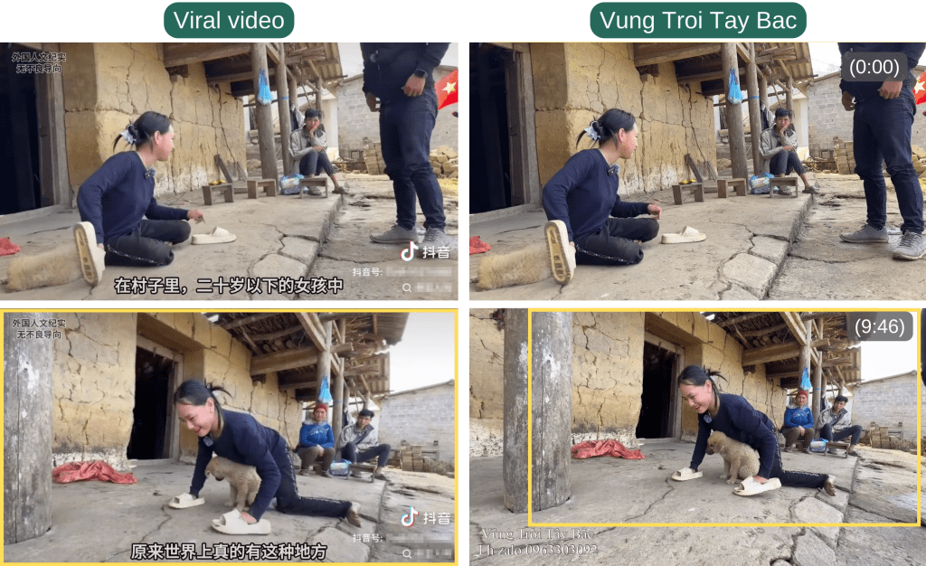 Her scenes were traced to a video posted on Nov. 11, 2024, by the YouTube channel Vung Troi Tay Bac. She appears at the beginning and again at 9:46.
