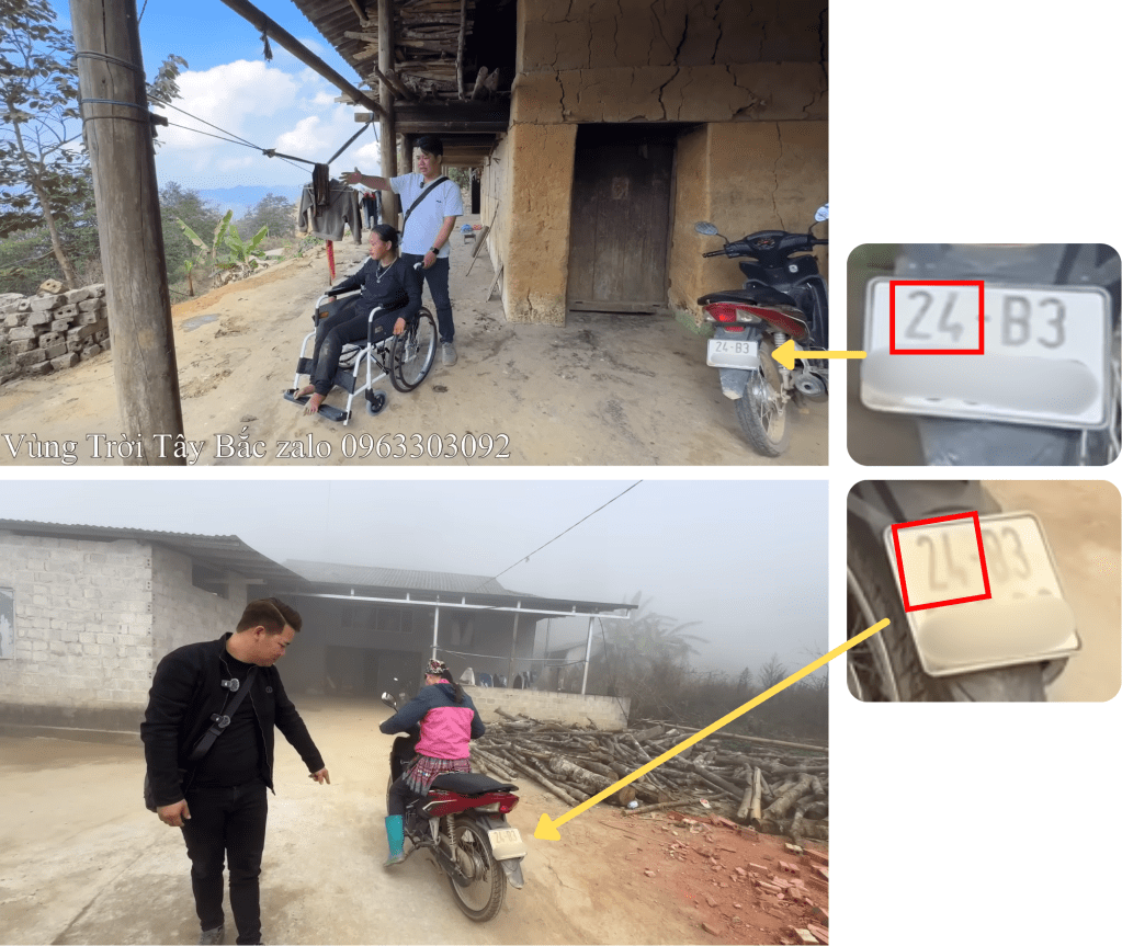 The video does not name her location, but visual clues point to northern Vietnam. A motorcycle parked in Lau’s home later appears being ridden by her mother in another video, and the license plate shows the regional code “24.”