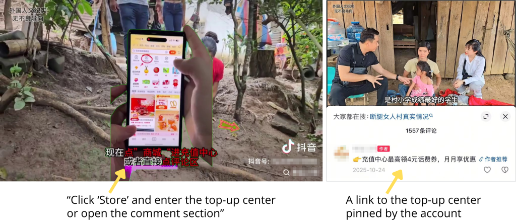 In the version circulating on Douyin, some frames were cropped to remove contact details that appeared in the YouTubers’ original footage, obscuring the context that this was a charity appeal.