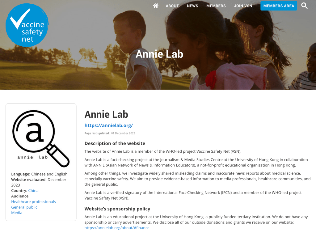 “This accolade acknowledges Annie Lab’s commitment to providing reliable, science-based information about vaccines,” said Ruby Yang, the interim director of the Journalism and Media Studies Centre (JMSC) at the University of Hong Kong, where Annie Lab operates. “[It is a] remarkable achievement,” she added.