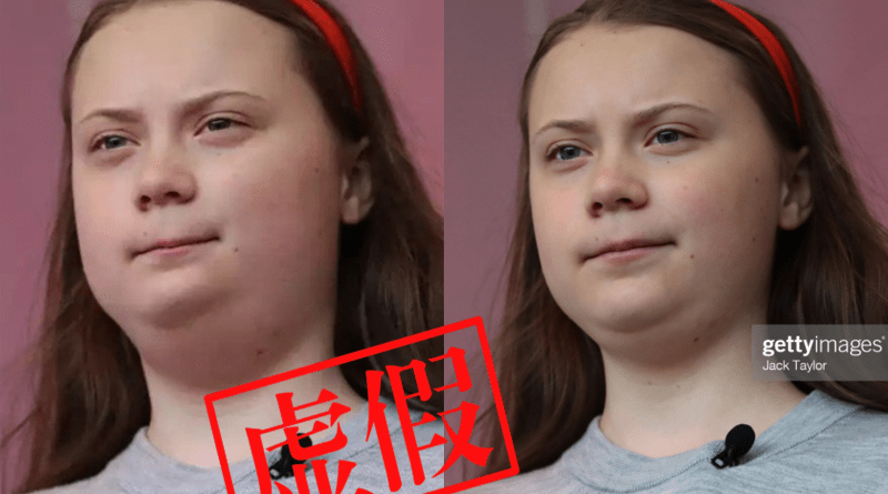 多個社交媒體的帖文暗指瑞典「環保少女」通貝里體重上升,但有關圖片曾被篡改,令她的臉和下巴看起來較真實照片圓潤。